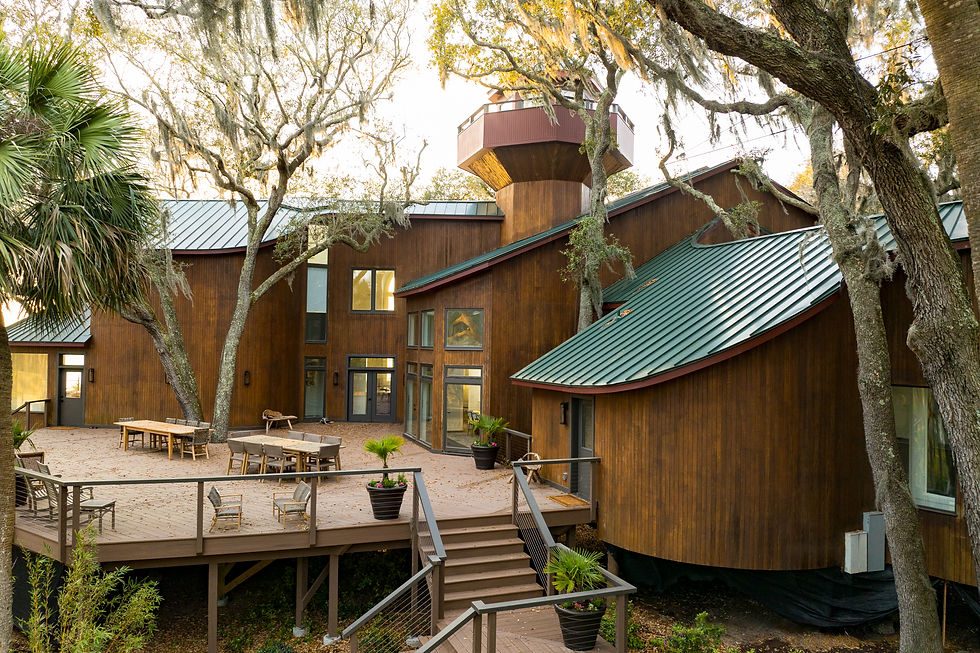 Multiple outdoor gathering areas are seamlessly integrated throughout the landscape, each designed to embrace the marsh front setting—creating a collection of inviting spaces to relax, connect, and experience the outdoors from every vantage point.