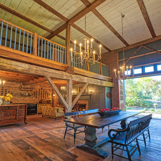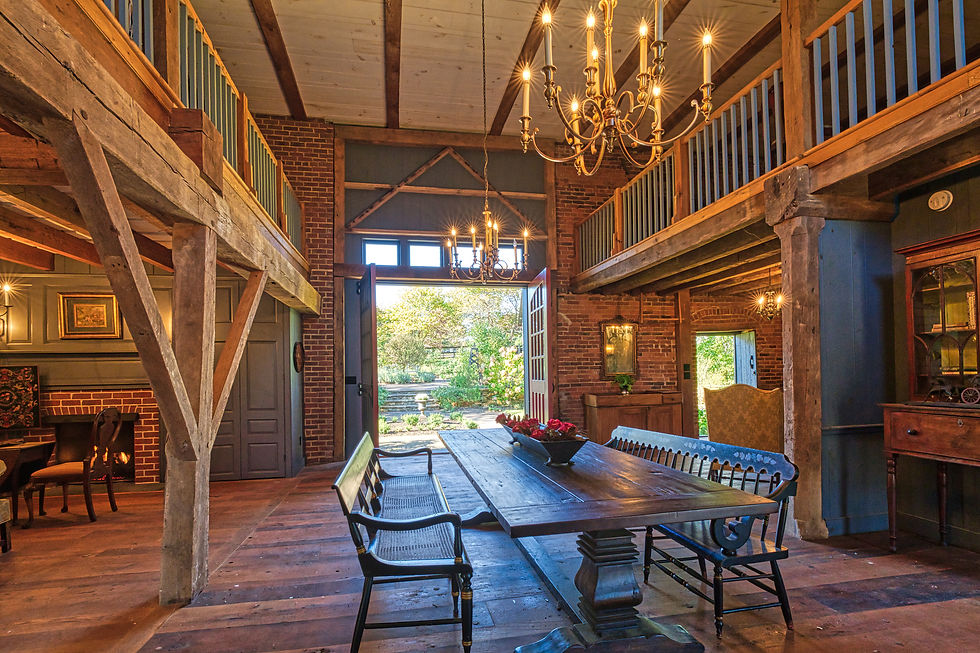It was restored and converted into living space by Allan Cochran, a builder with a well-earned reputation in this region for knowing how to work with structures like this. The result is interior space with soaring ceilings, multiple fireplaces, and wood floors — the kind of space that simply cannot be created from scratch, no matter the budget. You either have it or you don't.